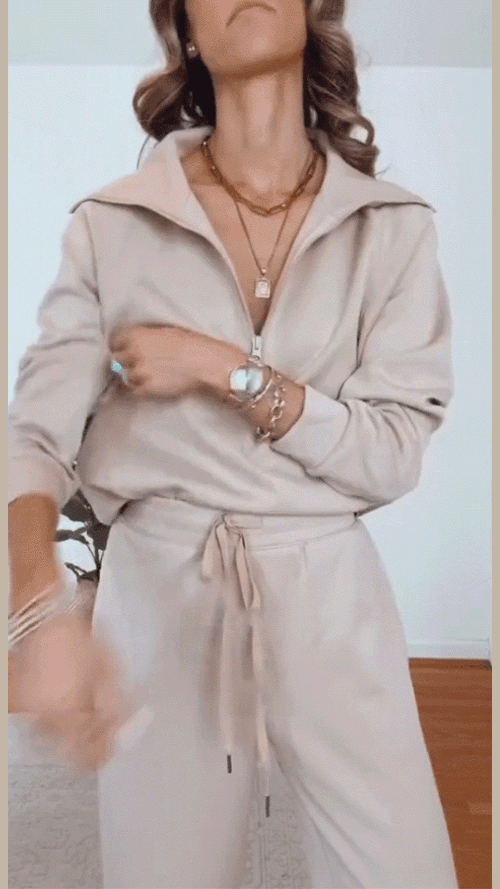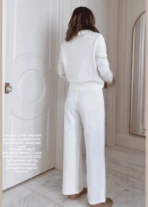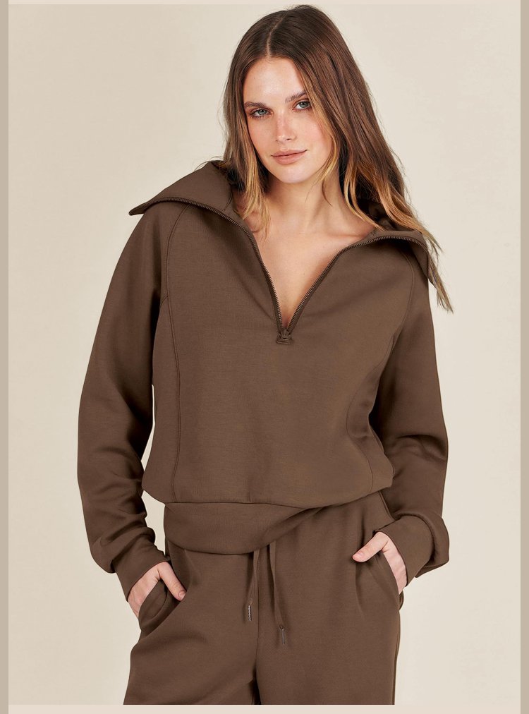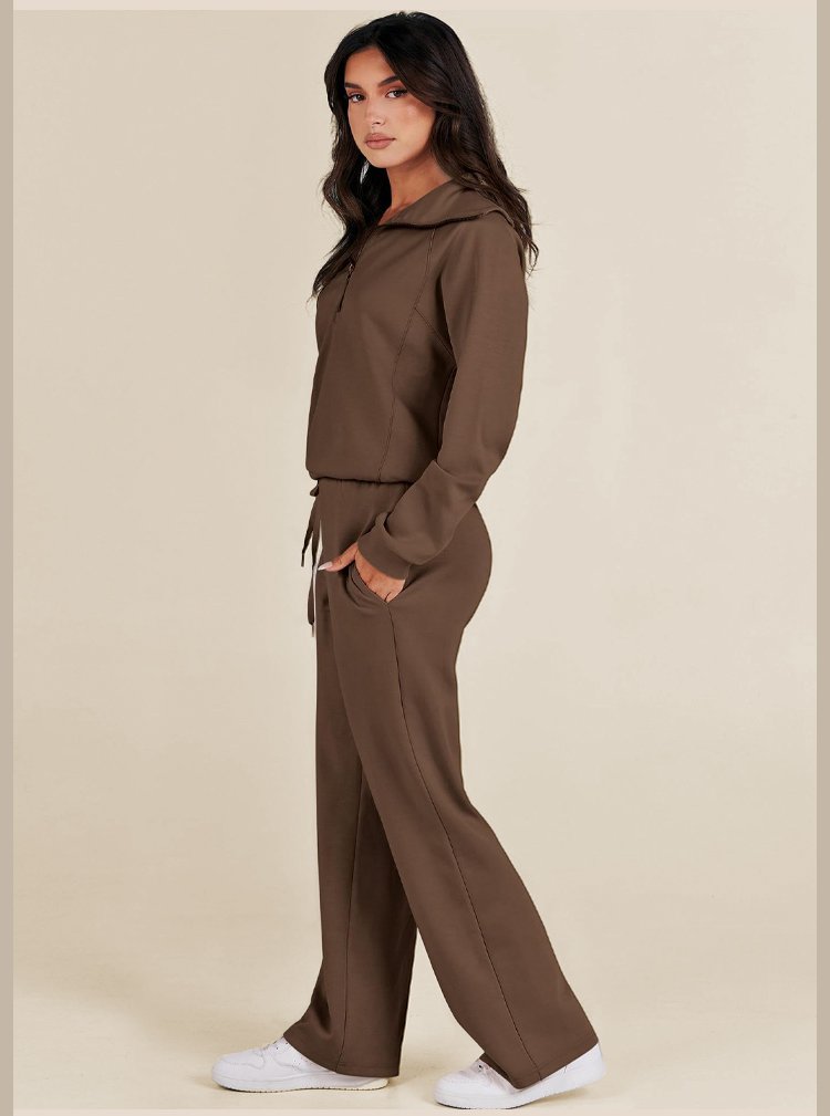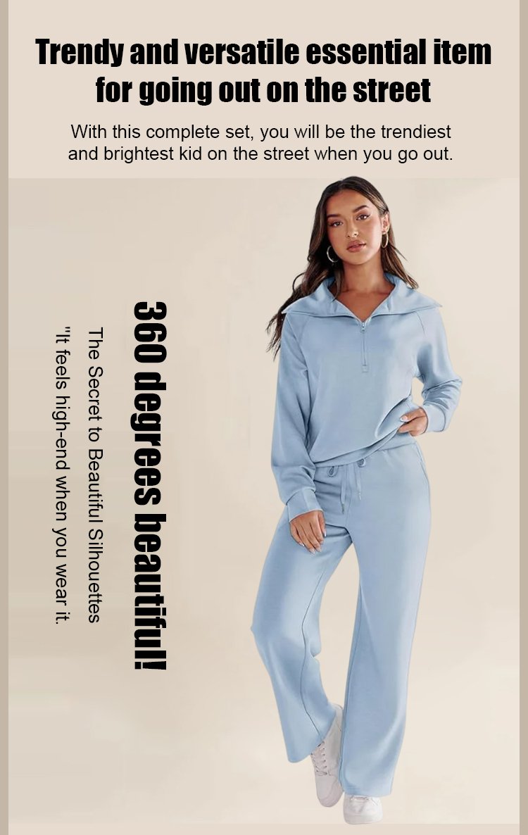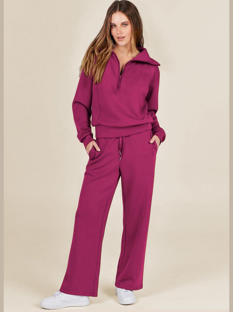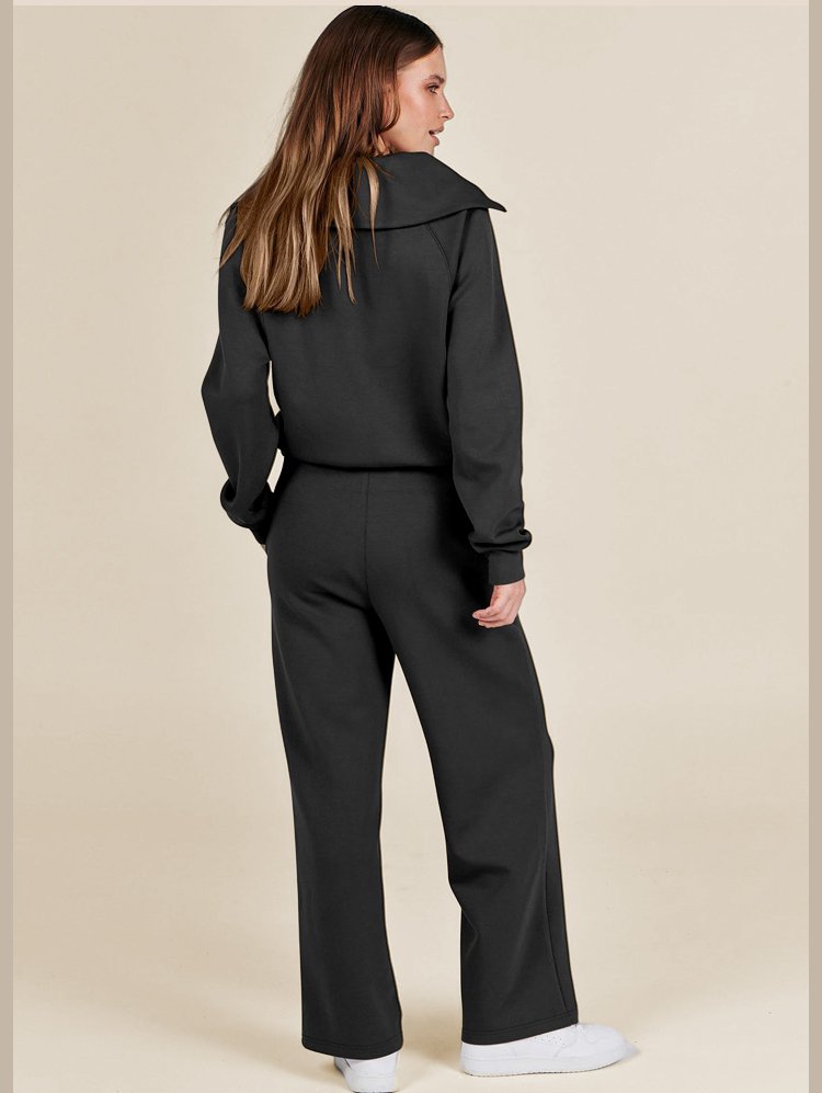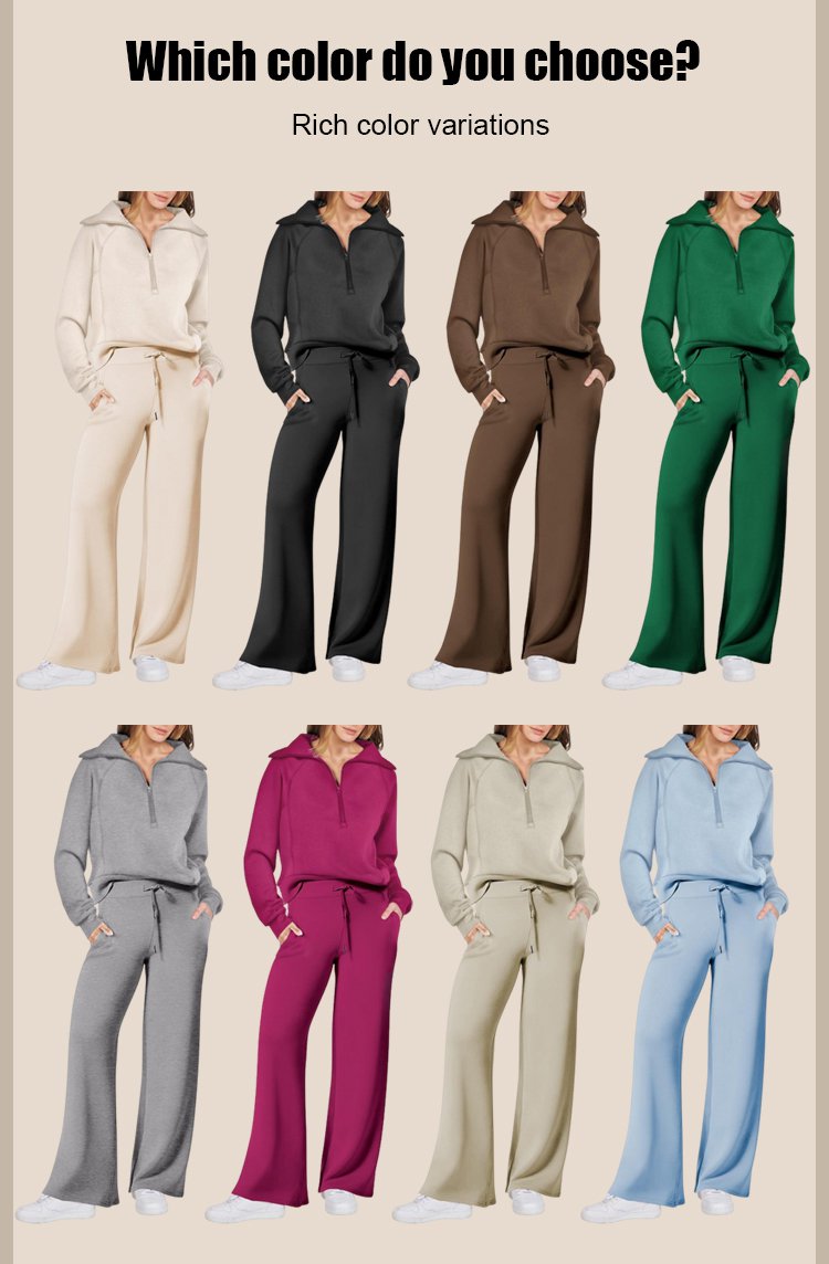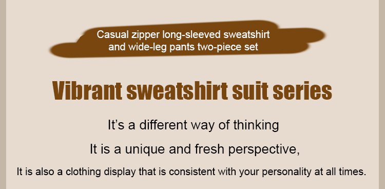 Casual Zipper Long Sleeve Sweatshirt Wide Leg Pants Two Piece Set